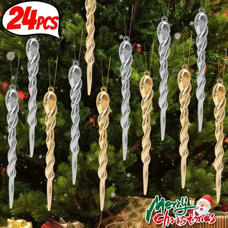 24/12PCS Gold Silver Simulation Icicle DIY Christmas Tree Hanging Ornament Fake Icicle Christmas New Year Party Home Decoration