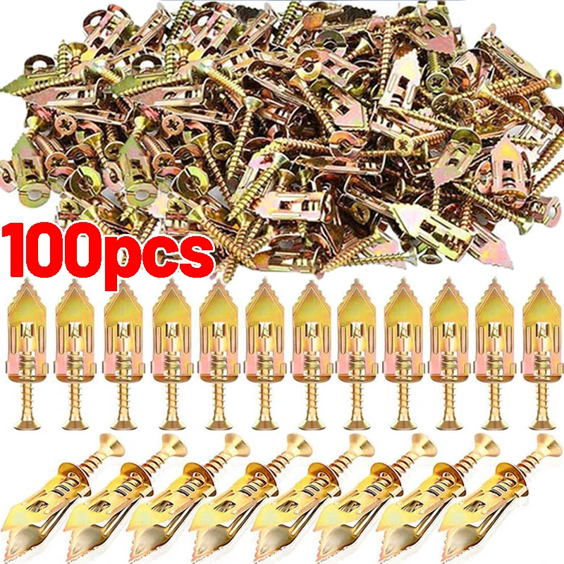 10/100Pcs Self Drilling Drywall Anchors with Screws Heavy Duty Zinc Plated Metal Expansion for Photo Frames Wall TV Shelf Straps