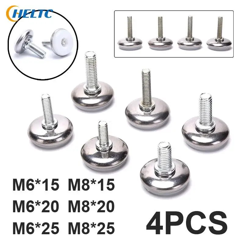 4pcs Adjustable Metal Furniture Levelers Feet Leg M6*15mm Thread Screw Black/Silver/Gold for Cabinet Table Chair Machine Base
