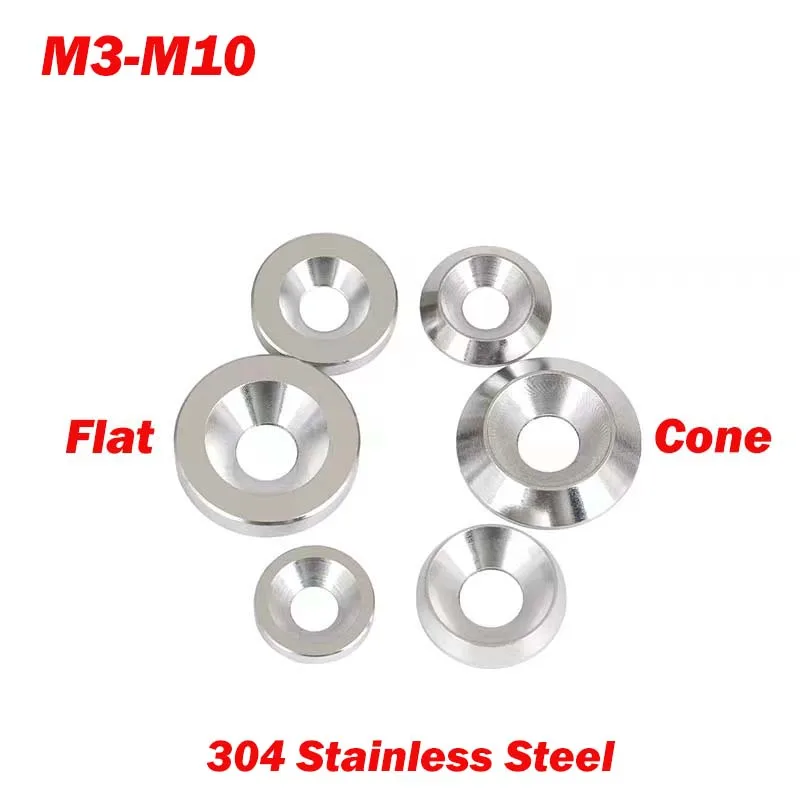 Concave and Convex Tapered Washers 304 Stainless Steel M3 M4 M5 M6 M8 M10 Conical Solid Countersunk Head Flat Gaskets 2~20Pcs  Read more