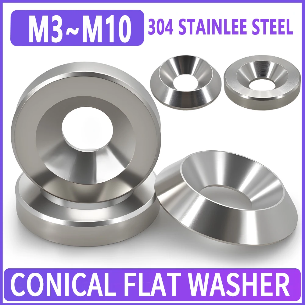 Concave and Convex Tapered Washers 304 Stainless Steel M3 M4 M5 M6 M8 M10 Conical Solid Countersunk Head Flat Gaskets 2~20Pcs