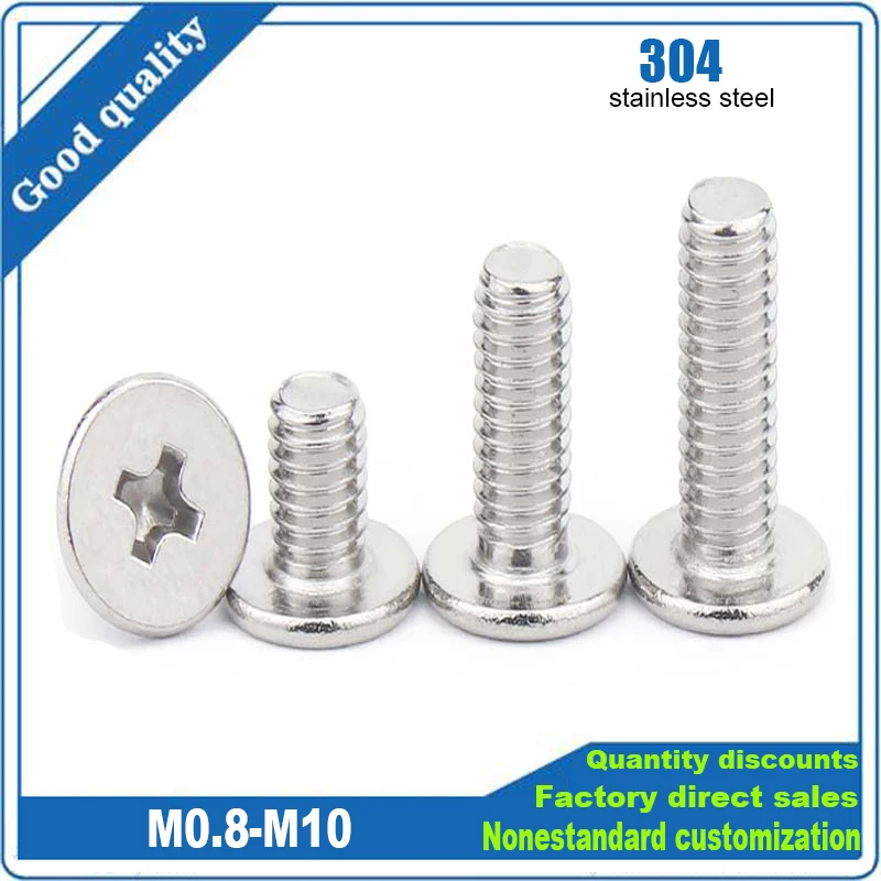 2/100pcs CM M0.8M1M1.2M1.4M2M2.5M3M4M5M6M8M10 304 Stainless Steel Cross Phillips Ultra Thin Super Low Flat Wafer Head Screw Bolt