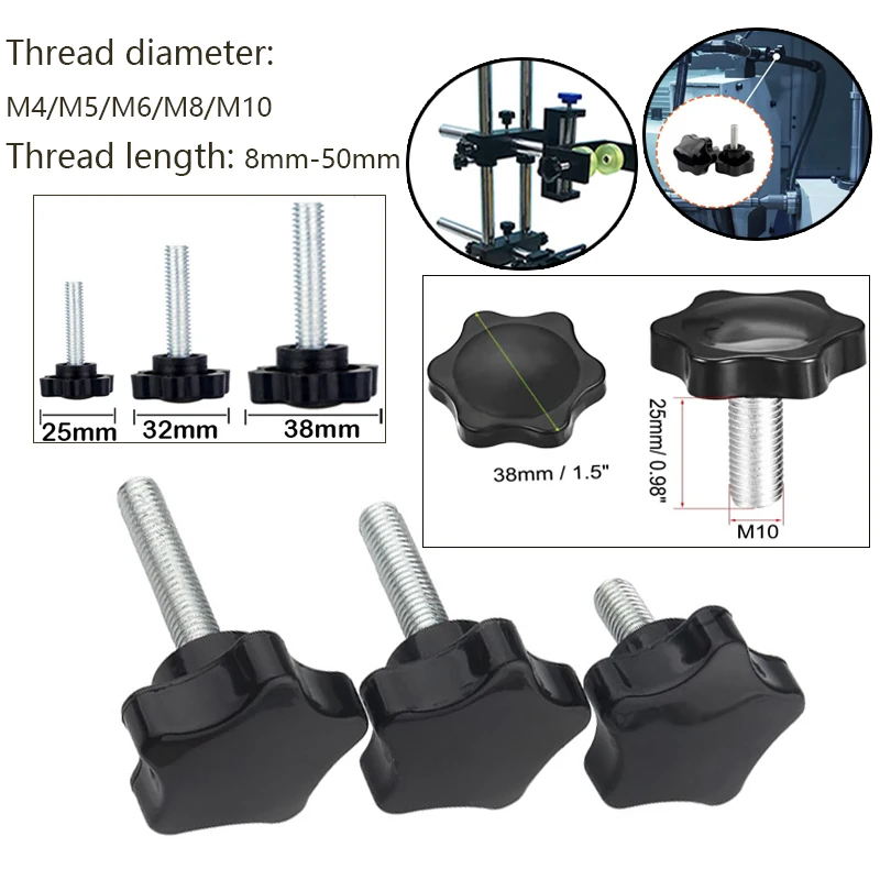 5pcs/10pcs Head diameter 25mm 32mm 38mm Hex Star Knob Male Thread Clamp Knob Screws M4/M5/M6/M8/M10 Hand Tighten Release Screws