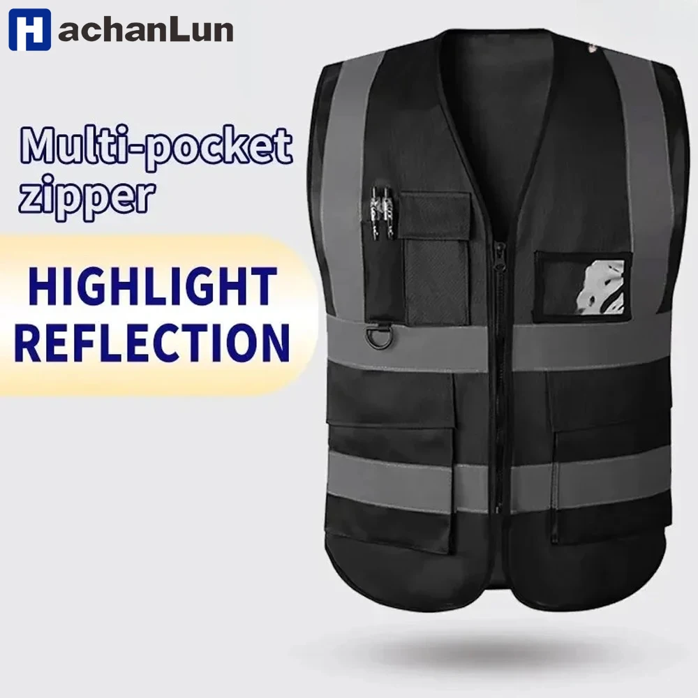 HACHANLUN Black Reflective Vest Vest Reflective Vest Traffic Riding Vest Overalls Multi-pocket Zipper