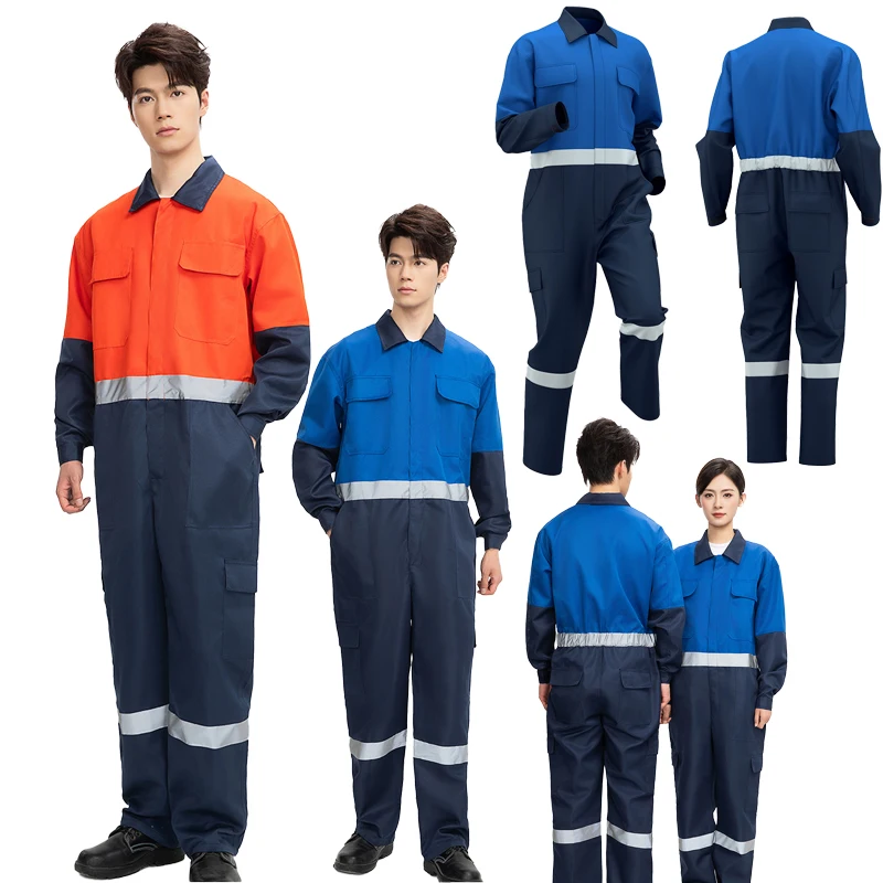 Reflective Strip Work Clothes Suit Wear-resistant Auto Repair Machine Repair Dirt-resistant Ash Outdoor Safety Work Protection C