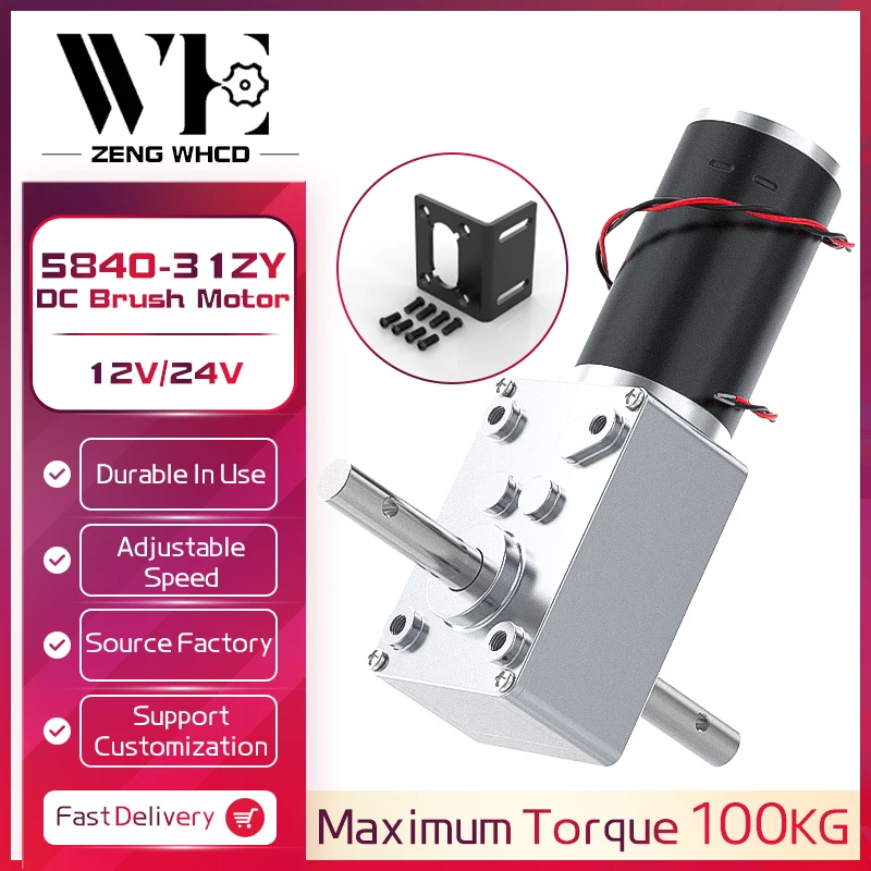 5840-31ZY Dual Shaft DC Micro Motor 12V/24V High Torque 70KG.CM All Metal Gear D Shaft 7RPM~471RPM Worm Gear Reducer Reversible