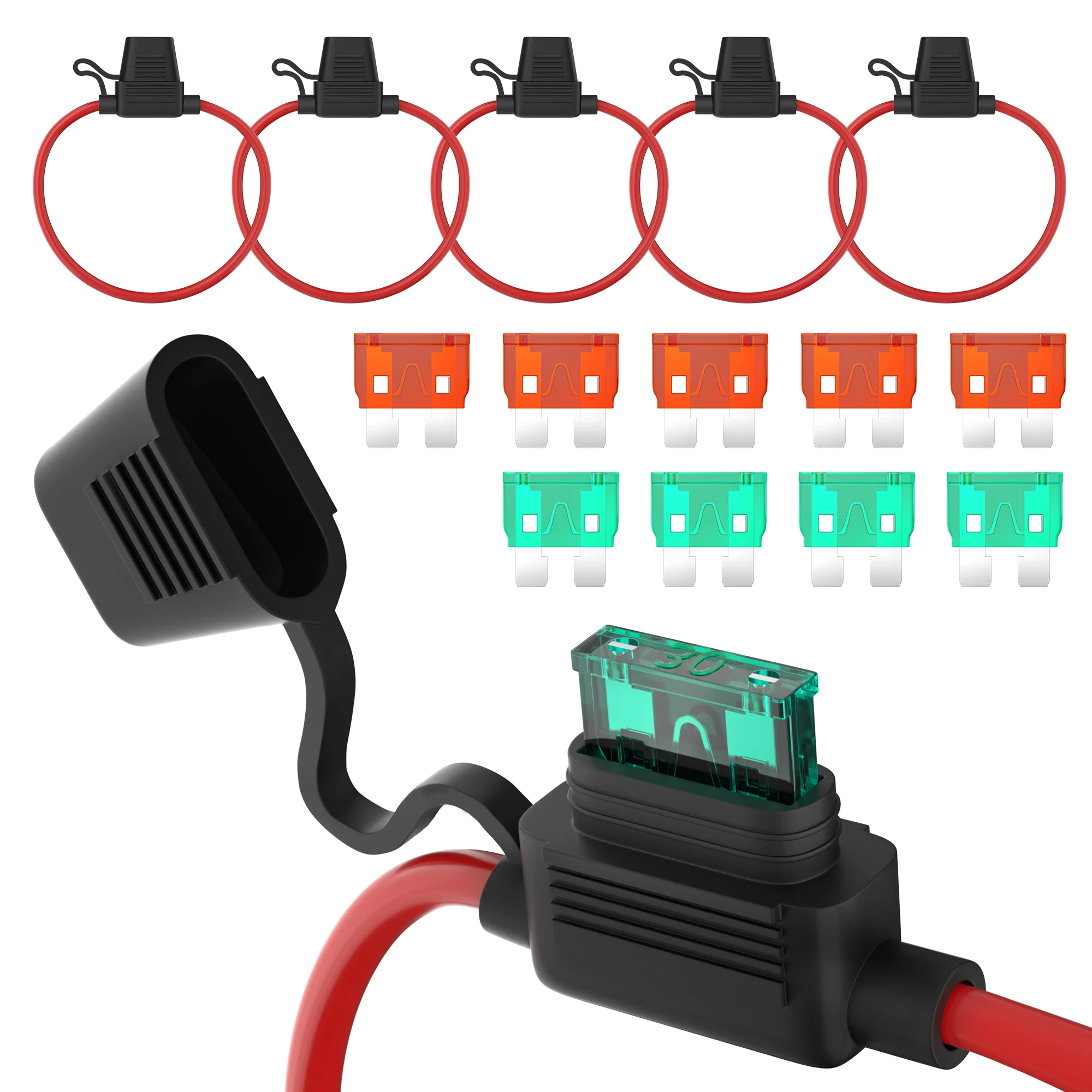 DaierTek 5PCS 18 Gauge Inline Fuse Holder 12V ATO/ATC in Line Fuse Holder 12 Volt Waterproof with 30 Amp 40 Amp for Marine Car  Read more
