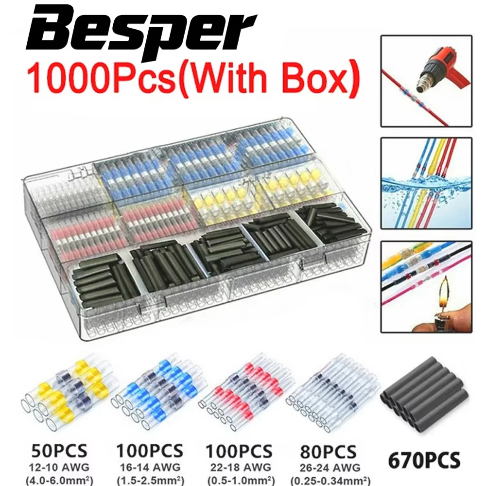 50-1000Pcs Solder Seal Wire Connectors Heat Shrink Waterproof Solder Butt Connectors Solder Connector Kit Auto Marine Insulated