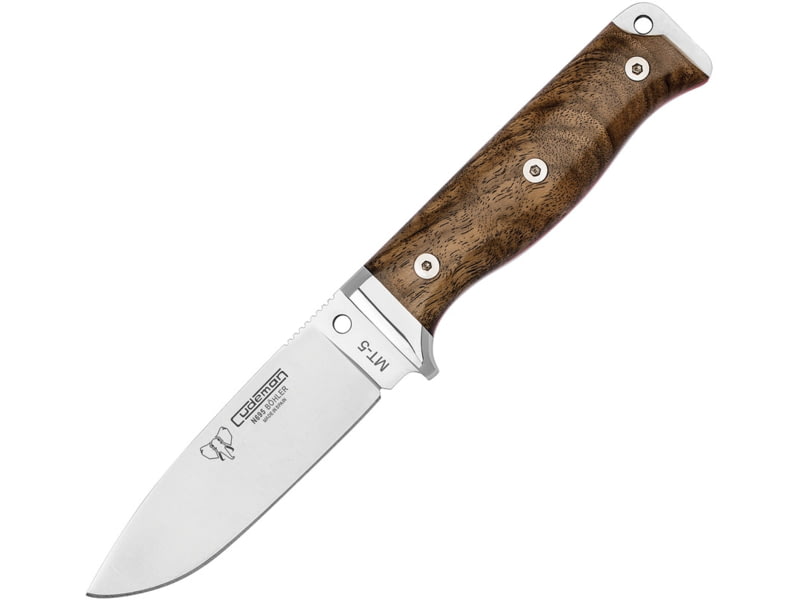 Cudeman MT5 Survival Knife Walnut Fixed Blade Knife 8.88in Overall 4.25in Satin Bohler N695 SS Drop Point Polished Walnut Handle SS Guard Red Liners. 88" overall. 4.25" satin finish Bohler N695 stainless drop point blade. Polished Walnut handle....  Read more