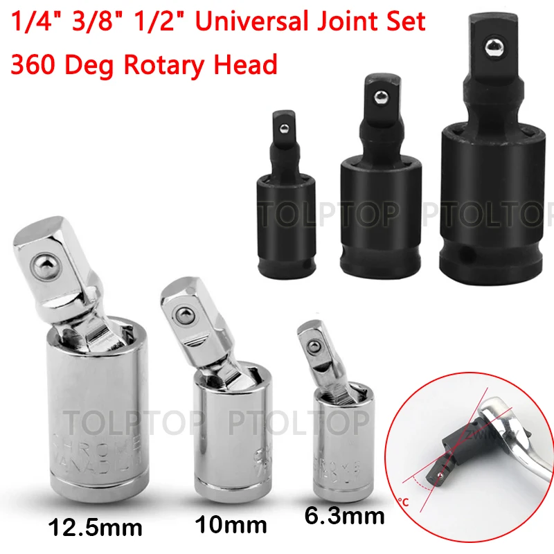 1/4" 3/8" 1/2" Universal Joint Set 360 Deg Rotary Head Ratchet Angle Extension Bar Socket Adapter Bendable Adapter Socket Tools