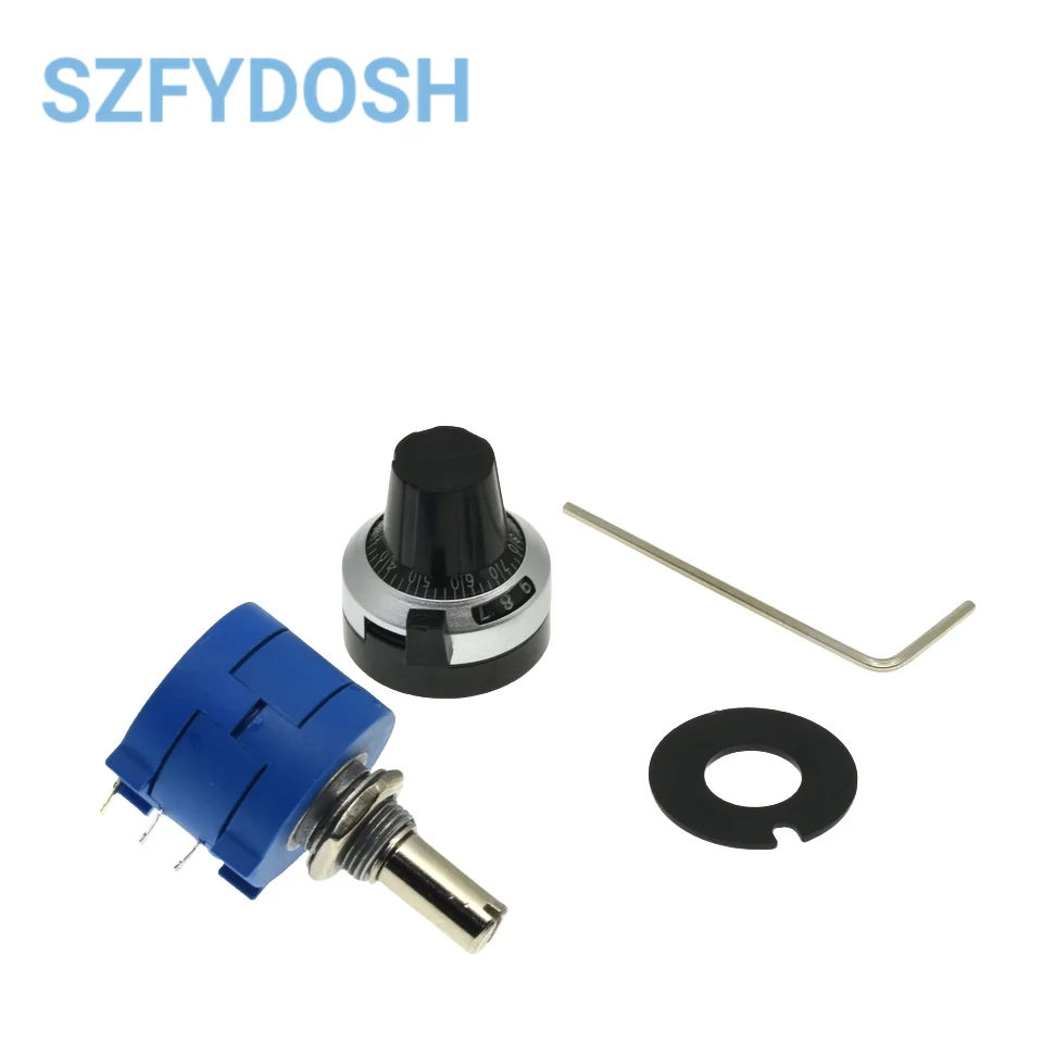 3590S-2 3590S Series Precision Multiturn Potentiometer 10 Ring Adjustable Resistor+1PCS Turns Counting Dial Rotary 6.35mm Knob