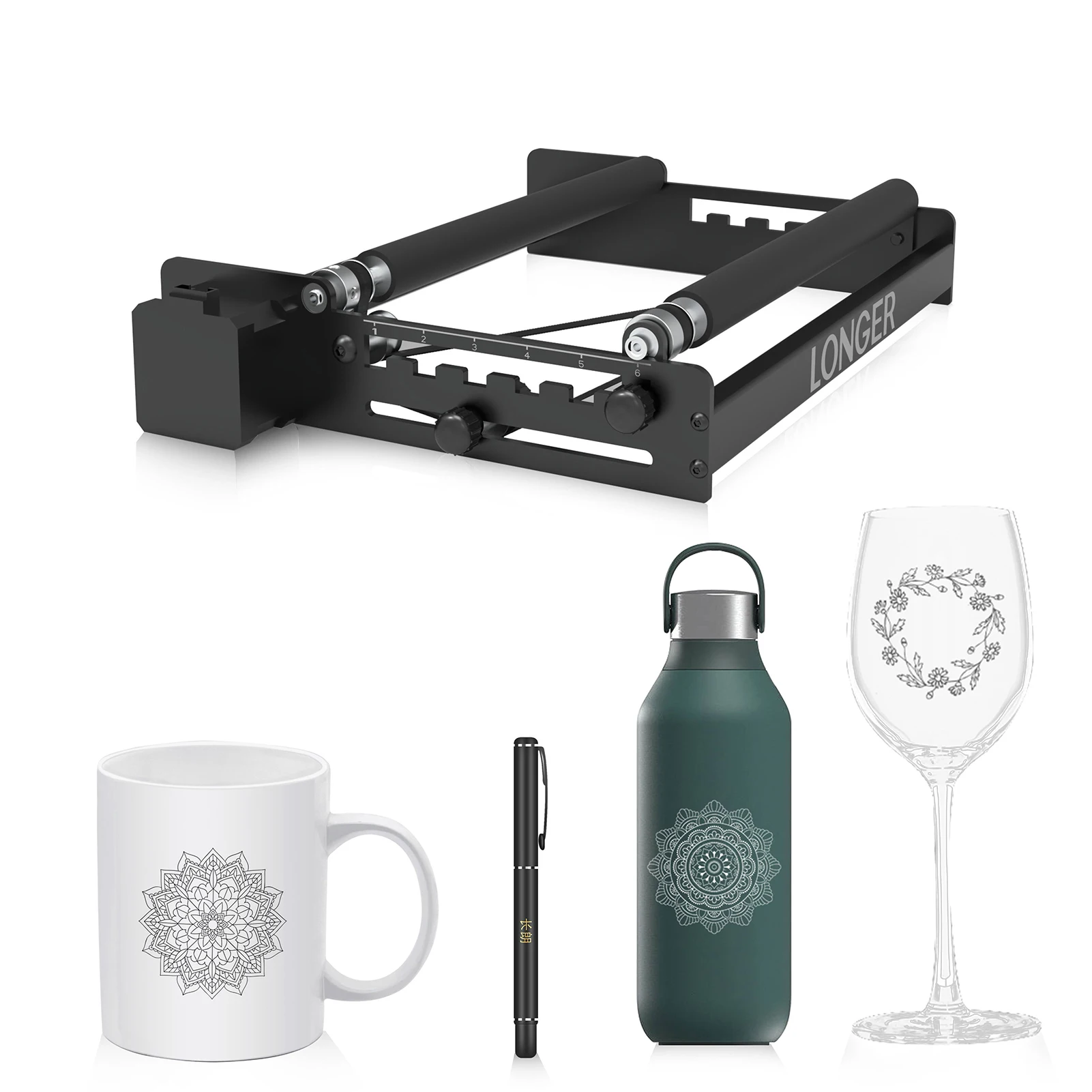 LONGER RAY5 Laser Rotary Roller 6-200mm Adjustable Engraving Space 360 Degrees Rotation Y-axis Laser Engraver Rotary Attachment