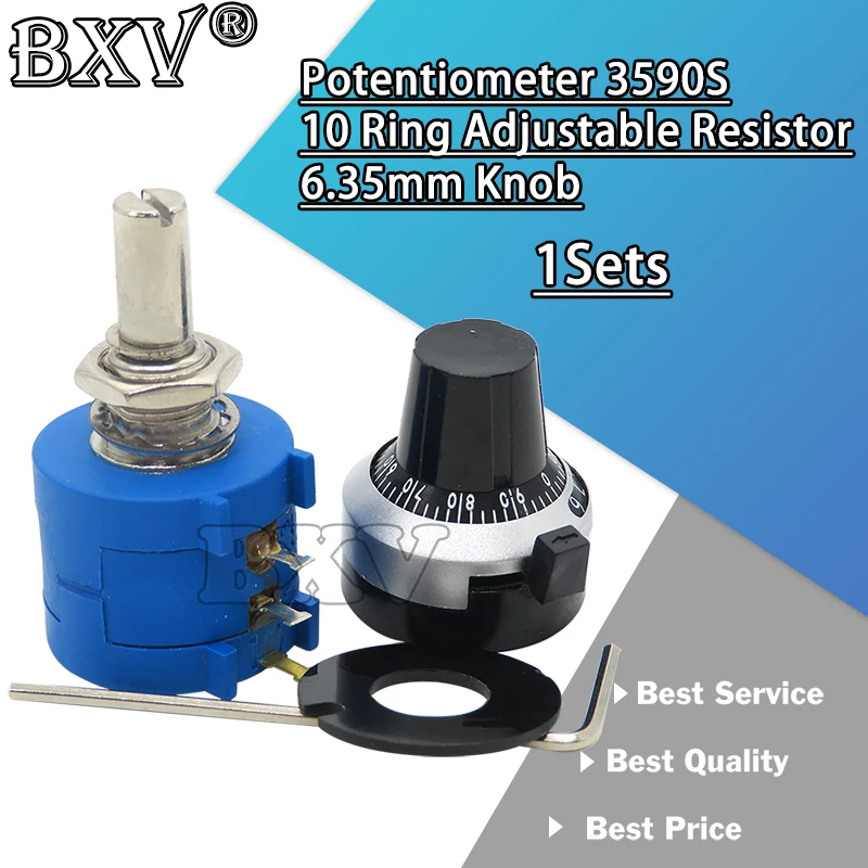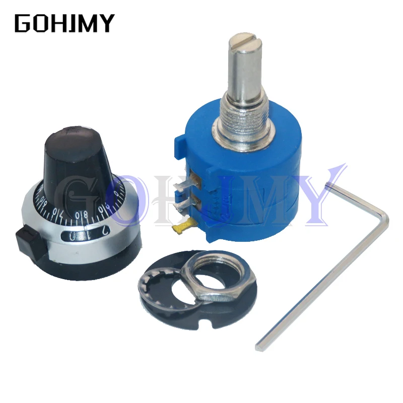 1Set 3590S Precision Multiturn (1PCS Potentiometer 10 Ring Adjustable Resistor+1PCS Turns Counting Dial Rotary 6.35mm Knob)