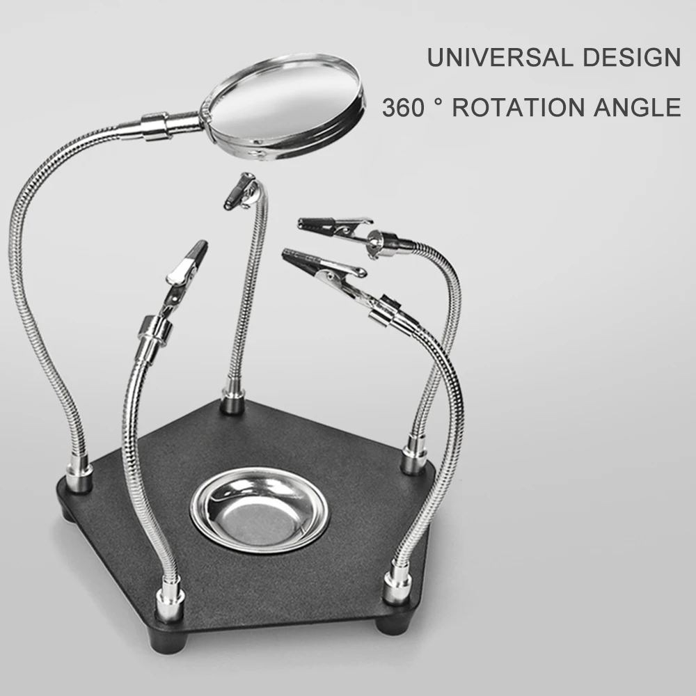 Welding Soldering Magnifier with PCB Holder Flexible Metal Arms Helping Hands for Welding Station Desktop Magnifying Tool