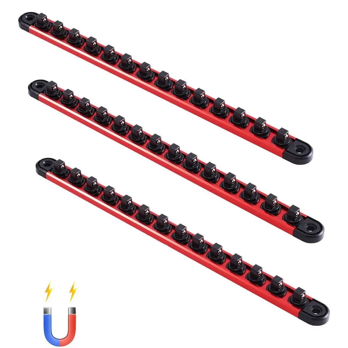 SucceBuy 3PCS Magnetic Socket Organizer Rail Set Metric & SAE Aluminum Socket Holder 3/8'' 1/2'' with 360° Clips for Tool Box