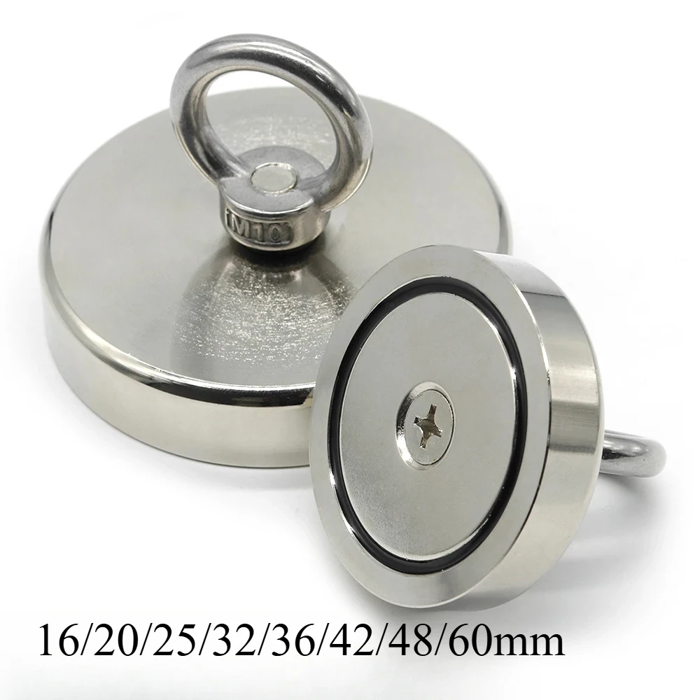 16/20/25/36/42/48/60mm Neodymium Fishing Magnet Heavy Duty Rare Earth Magnet with Countersunk Hole Eyebolt Salvage Magnetic  Read more