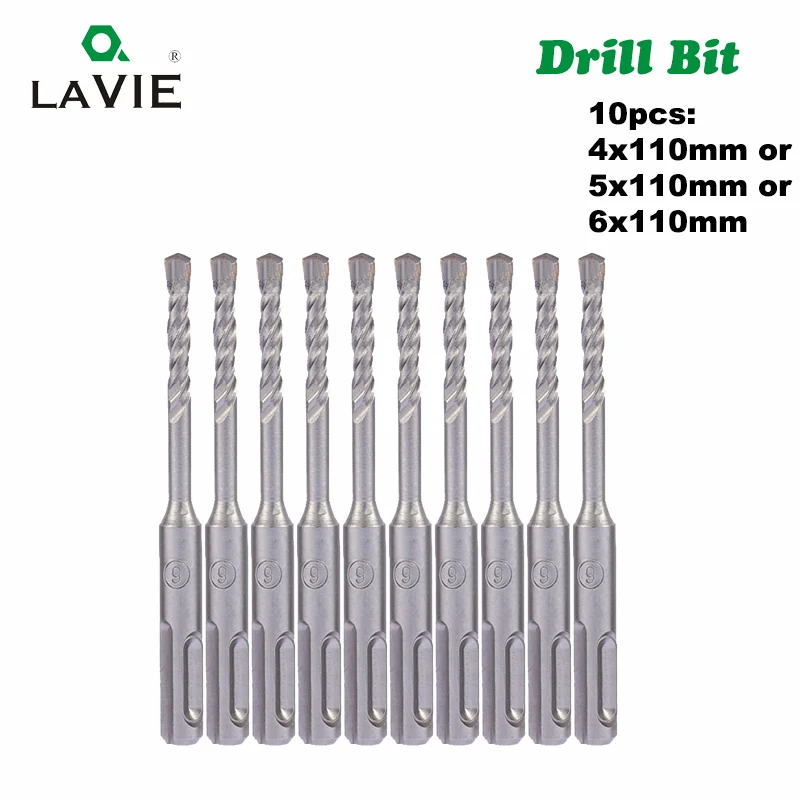 LAVIE 10pc 4 5 5.5 6 6.5mm Electric Hammer SDS Plus Drill Bits Set 110mm Concrete Wall Brick Block Masonry Hole Saw Drilling 014