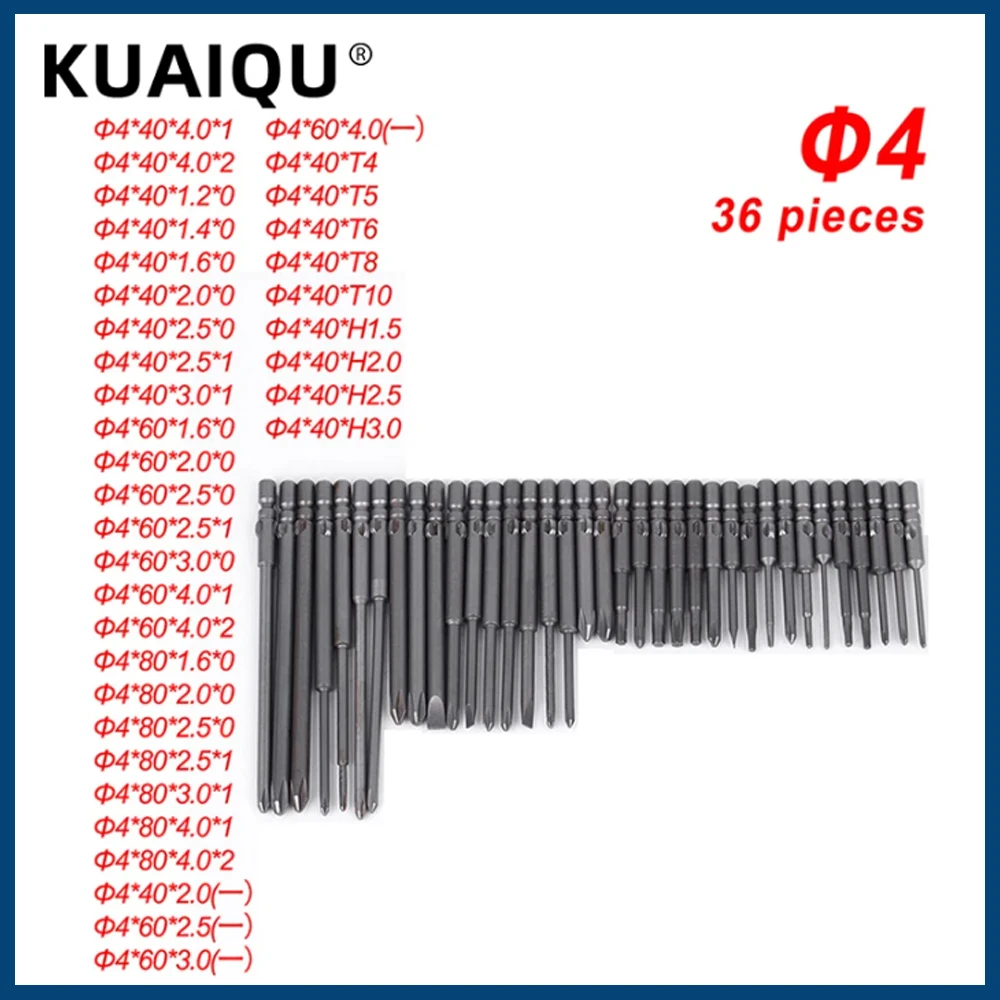 36p 40mm PH1-PH2 Electric Screwdriver Head Drill Bit Set Round Shank Magnetic S2 Alloy Steel For Cross Torx Head Diameter 4/5/6
