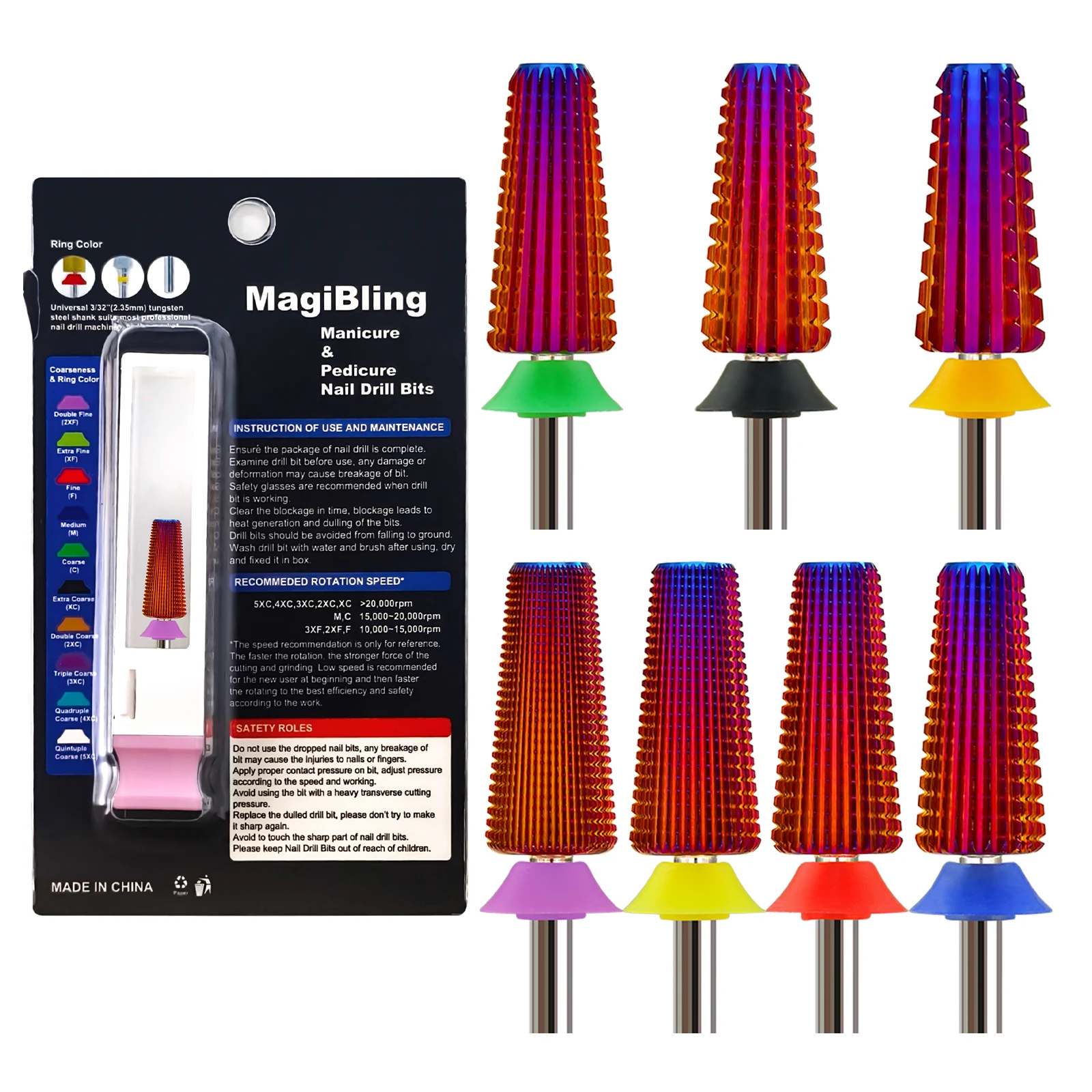 MagiBling Carbide Tapered Barrel Nail Drill Bits Upward Teeth Design Right handed Cuticle Gel Polishing Remove Nails Tools 3/32