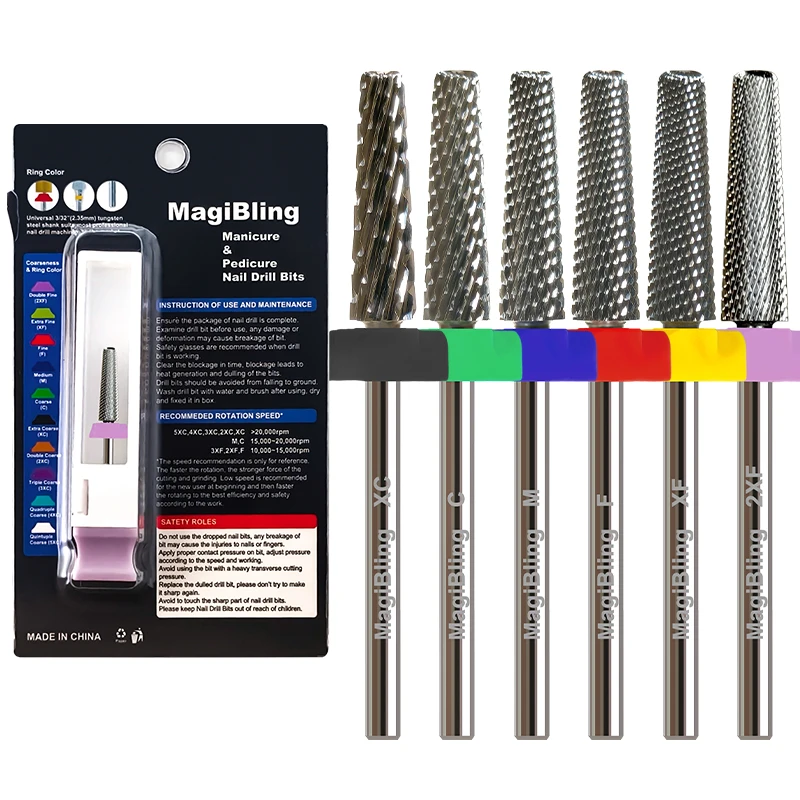 MagiBling Tapered Nail Drill Bits Carbide Milling Cutter Nails Apply Left & Right Hand Use Cuticle Soft Gel Polishing Tools