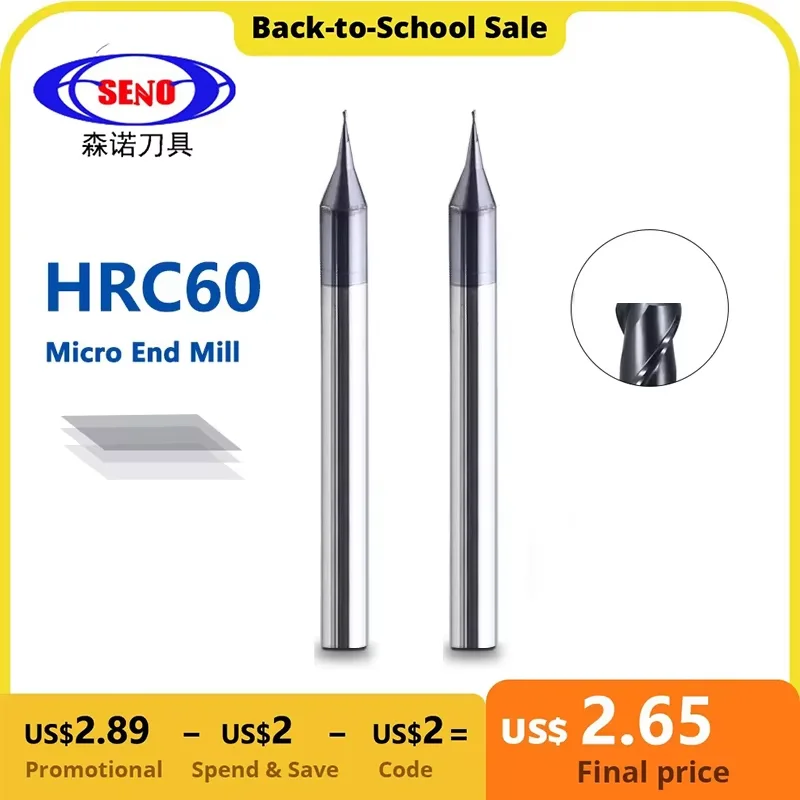 SENO HRC55 Micro Carbide End Mill 2 Flutes 0.2-0.9mm TiAIN Micro Flat 4mm Shank Milling Cutter Mirco Carbide CNC Engraving Bit