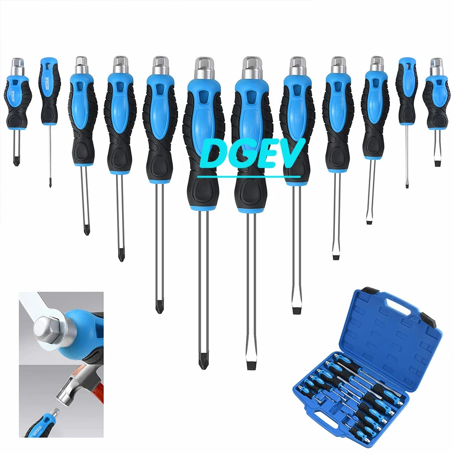 12-Piece Magnetic Screwdriver Set, Heavy Duty Screwdriver Set Go-Thru Steel Blades, High Torque 6 Phillips & 6 Flat Head Tips Sc