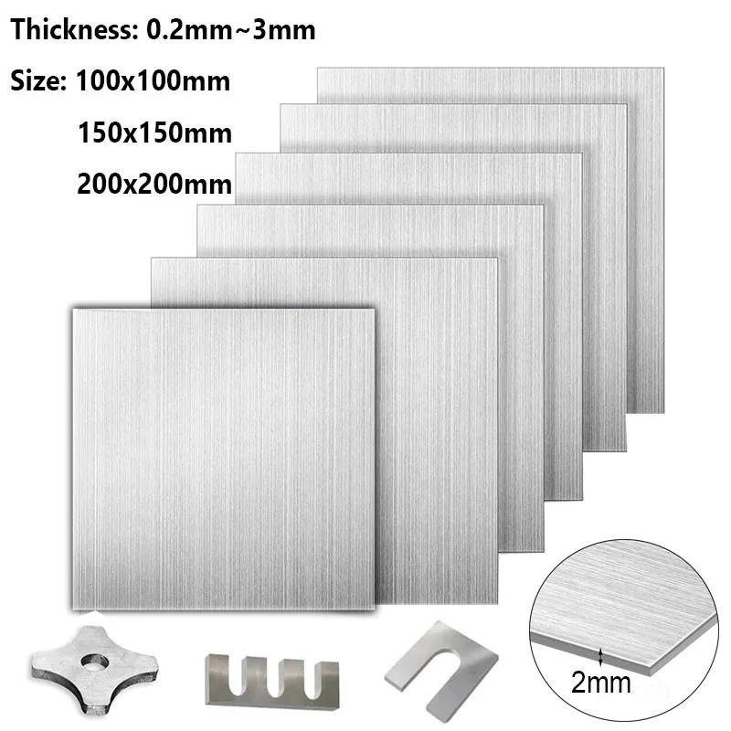 304 Stainless Steel Square Sheet Plate 100x100mm 200x200mm Thickness 0.2/0.5/0.8/1/2/3mm Flat Brushed Metal Polished Plate