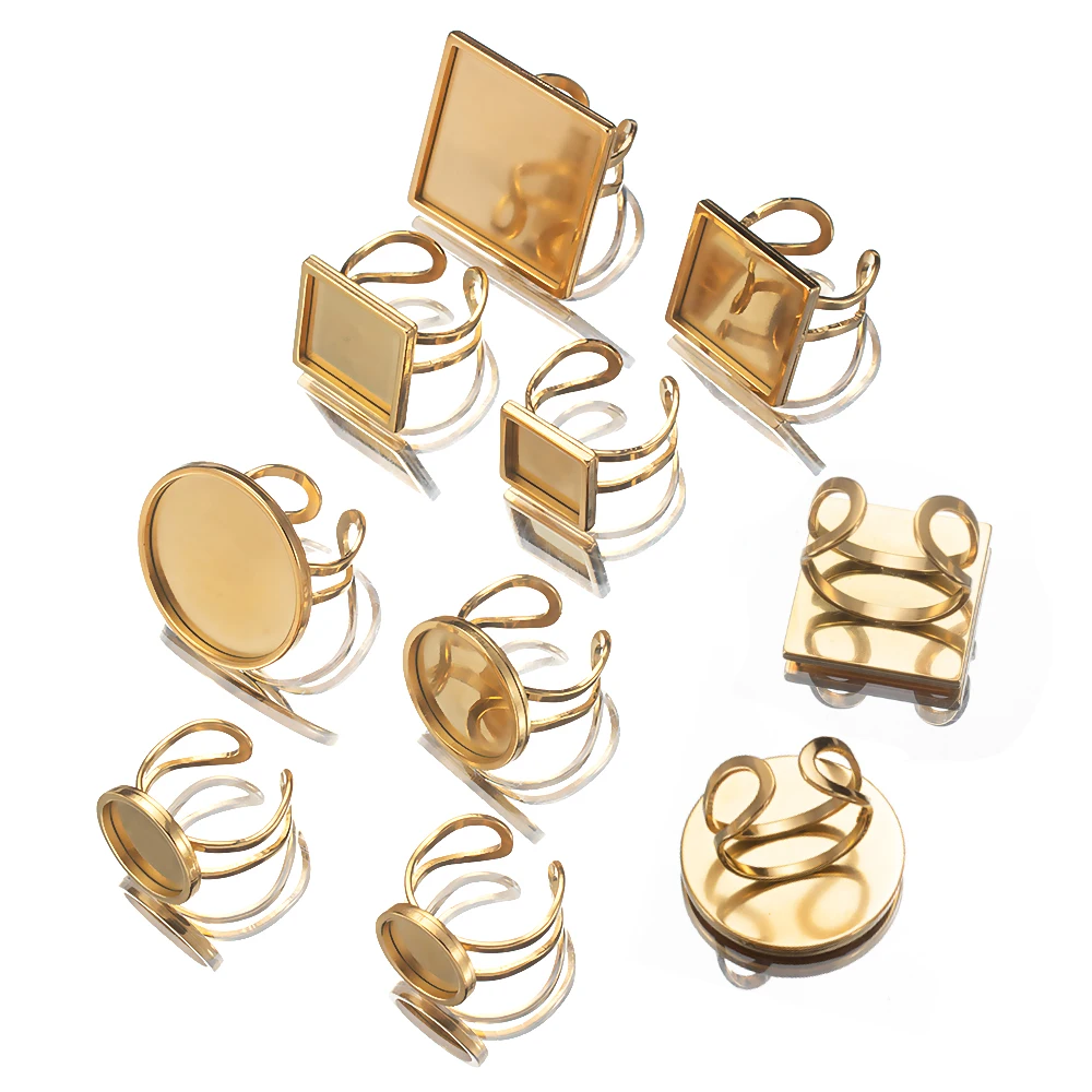 4pcs/lot Stainless Steel Open Ring Settings Flat Blank Base Large Square Round Oval Resin Cabochon Trayer Bezel Jewelry Making