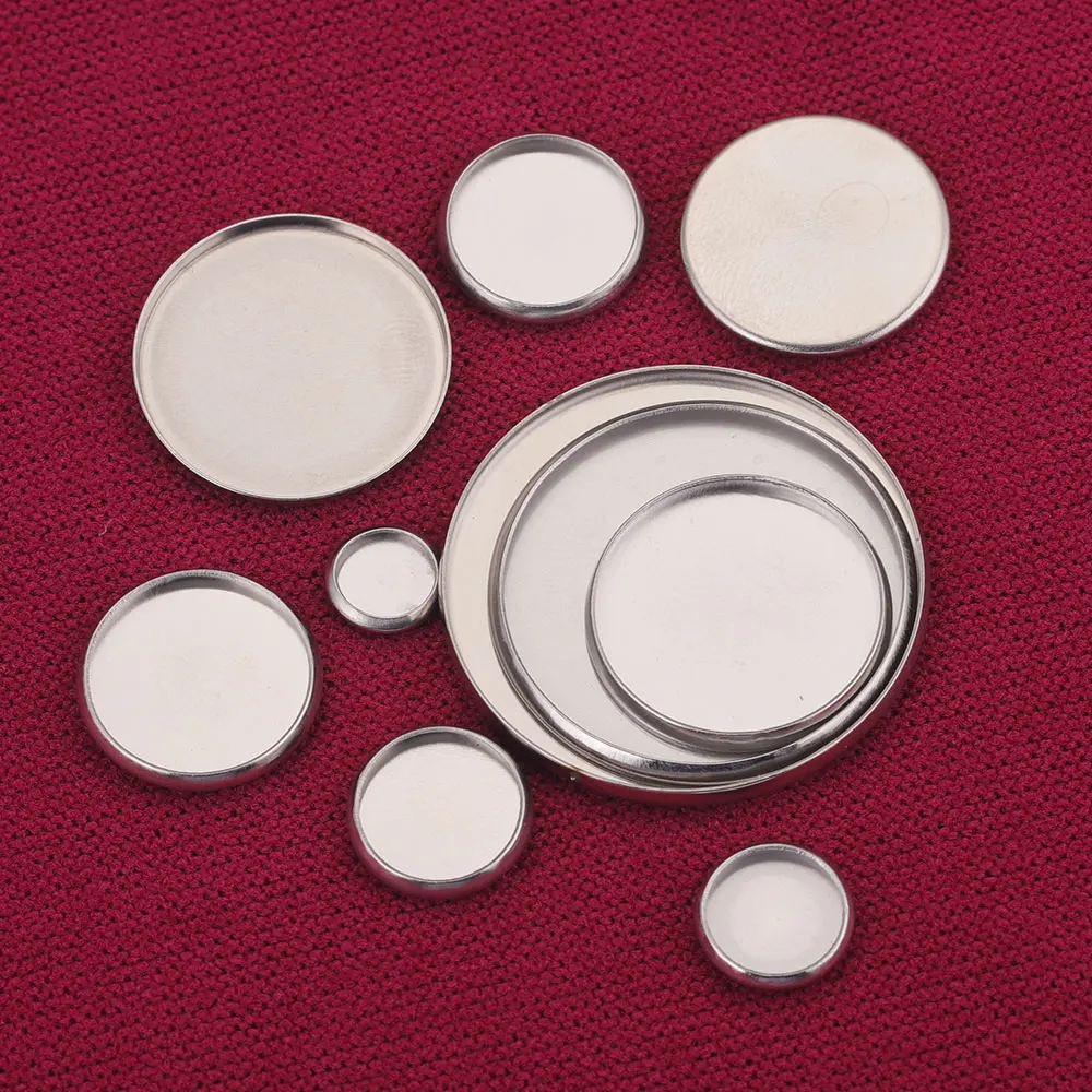20pcs Fit 8 10 20mm NO Hole Stainless Steel Flat Back Blank Cabochon Base Tray Setting Bezels Pendant Charms FOR Jewelry Making