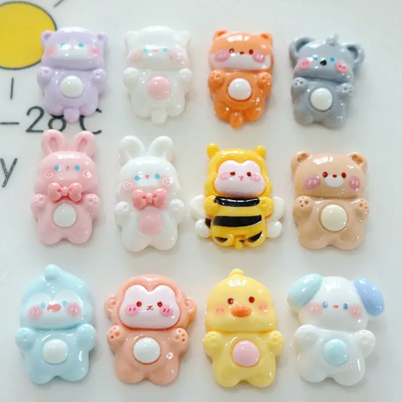 10Pcs New Cute Resin Bee Rabbit Monkey Little Bear Series Flat Back Fit Phone Deco Parts Embellishments For Hair Bows Accessorie