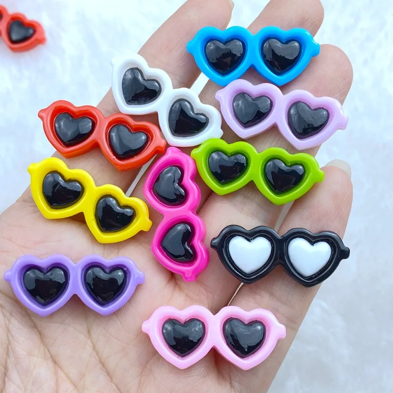 10Pcs New Cute 13*30mm Resin Heart Shaped Glasses Series Flat Back Fit Phone Deco Parts Embellishments For Hair Bows Accessories  Read more