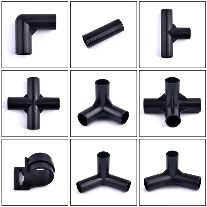 5Pcs Black Pipe Connector DIY Shelf Tent Fixed Connector Fittings I.D 8/12/16/19mm ABS Plastic Tee Four Way Elbow Straight Joint  Read more