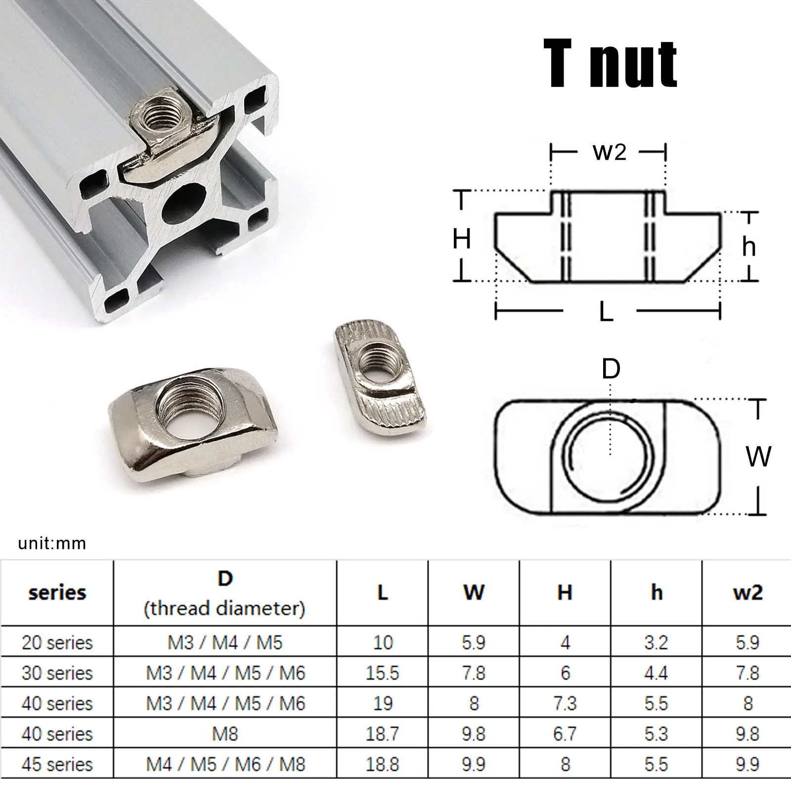 40 Series M4 M5 M6 M8 T-Nut For 4040 Aluminum profile Sliding Tee Nut Hammer T Fasten Connector 100 50 30Pcs  Read more