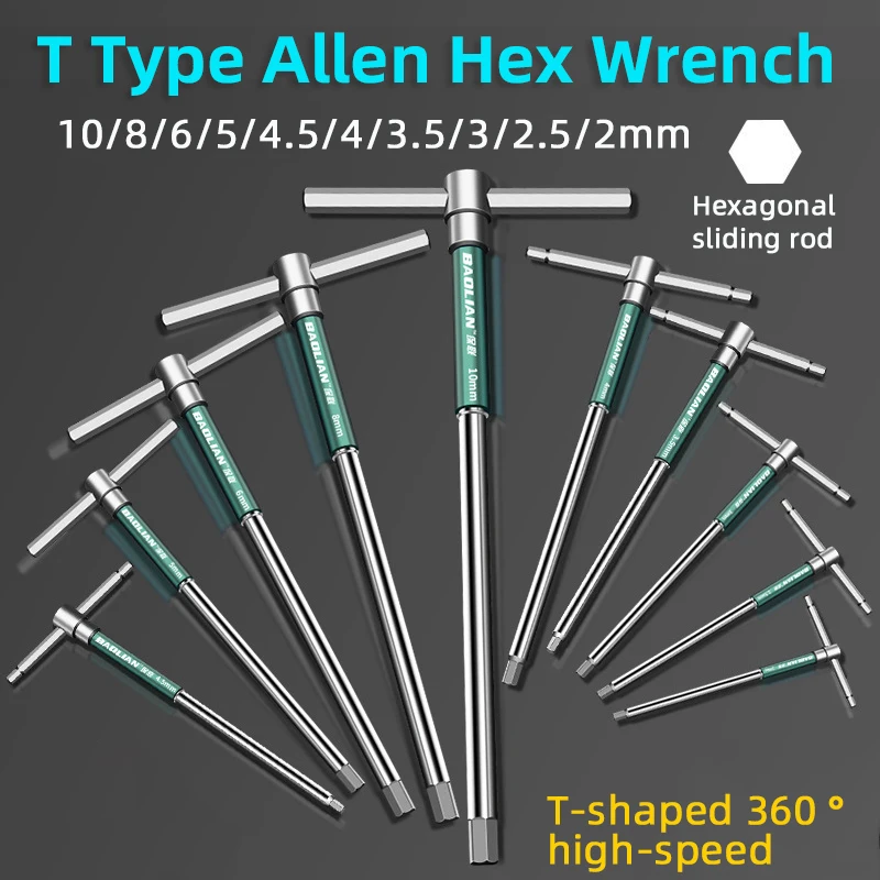 T Type Allen Hex Wrench 2.5/3/4/5/6/8/10mm High Speed Rotating Hexagonal Sliding Rod Wrench Stainless Steel Hex Torque Wrench