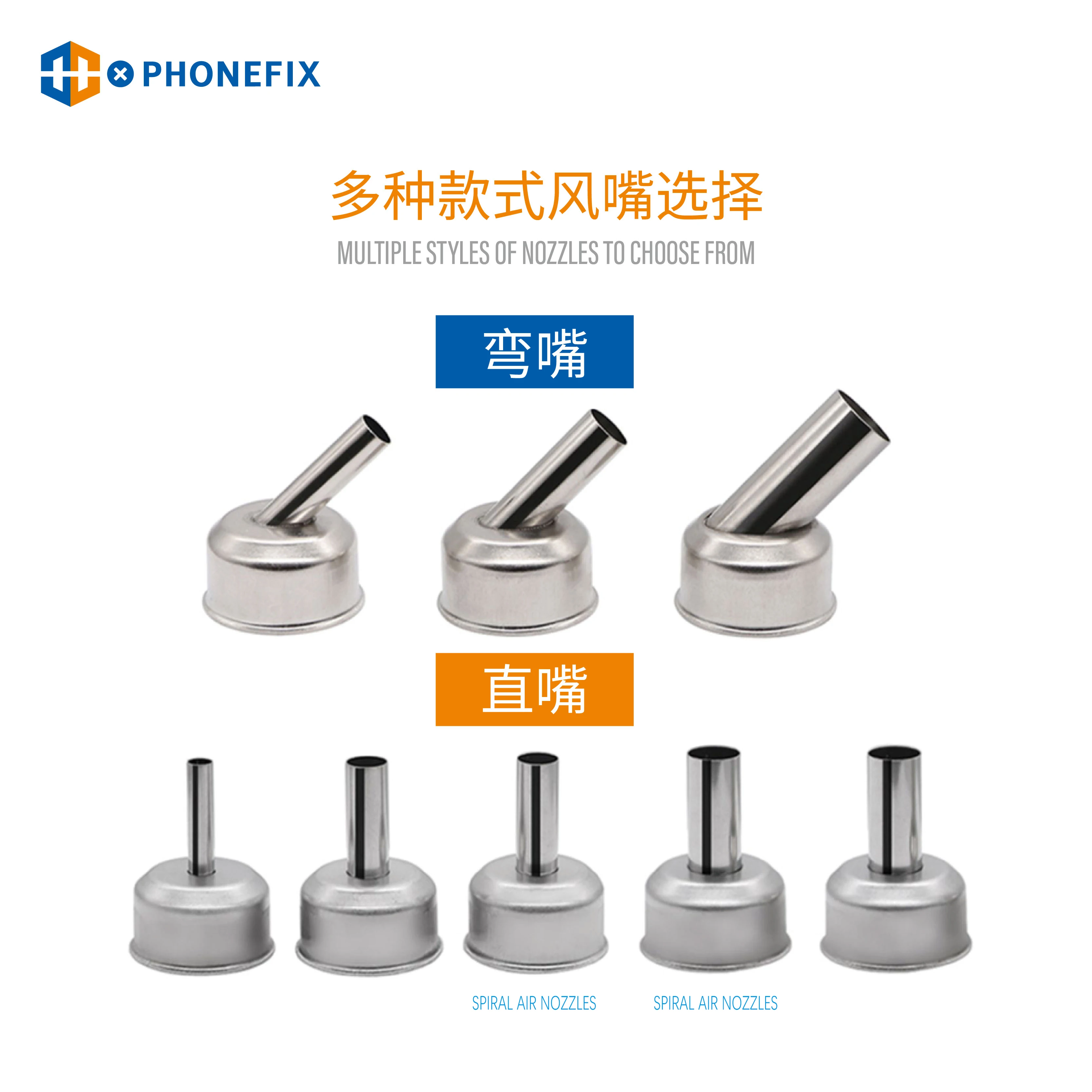 Atten ST-862D Type Hot Air Gun Nozzles 45 Degree Bent Nozzle Straight Spiral Hot Air Gun Nozzle for PCB Chip Desoldering Repair