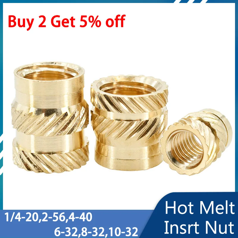 1/4 2-56 4-40 6-32 8-32 10-32 Inch Size Hot Melt Insert Nut Brass Threaded Heating Nuts Inserts PC Laptop 3D Printer Insertnut