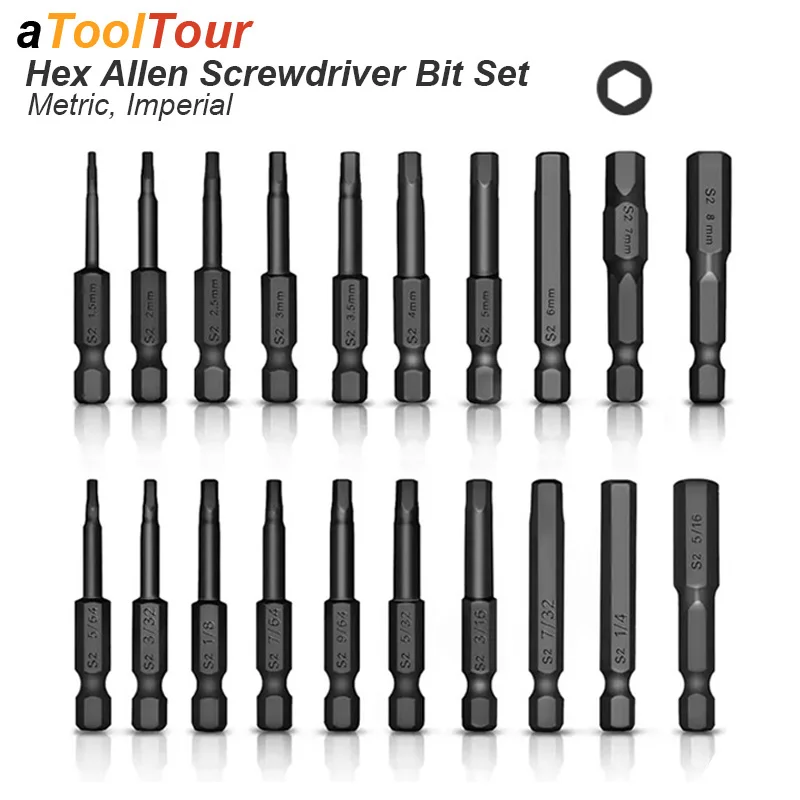 Hex Head Allen Wrench Power Drill Bit Set 1/4in Screwdriver SAE S2 Steel Screw Driver Extension Adapter Security Magnetic Tips