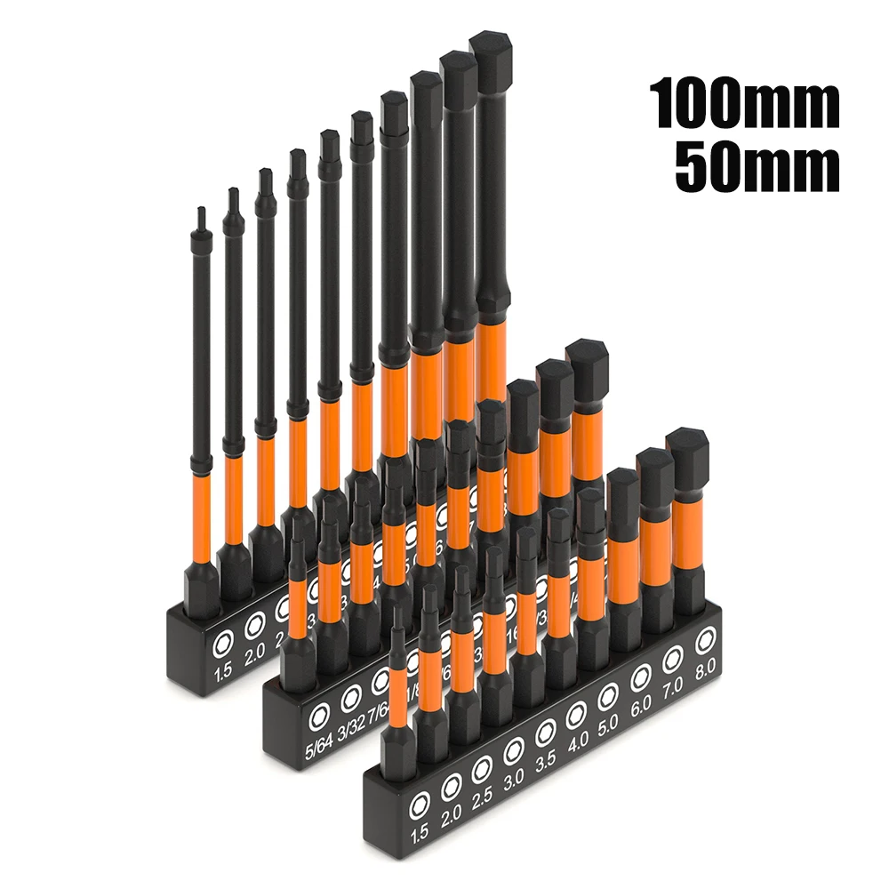 8Pcs H1.5-H8 S2 Alloy Steel Magnetic Hex Head Screwdriver Bits 50/75/100/150mm Screw Driver Bit Set Power Driver Tool