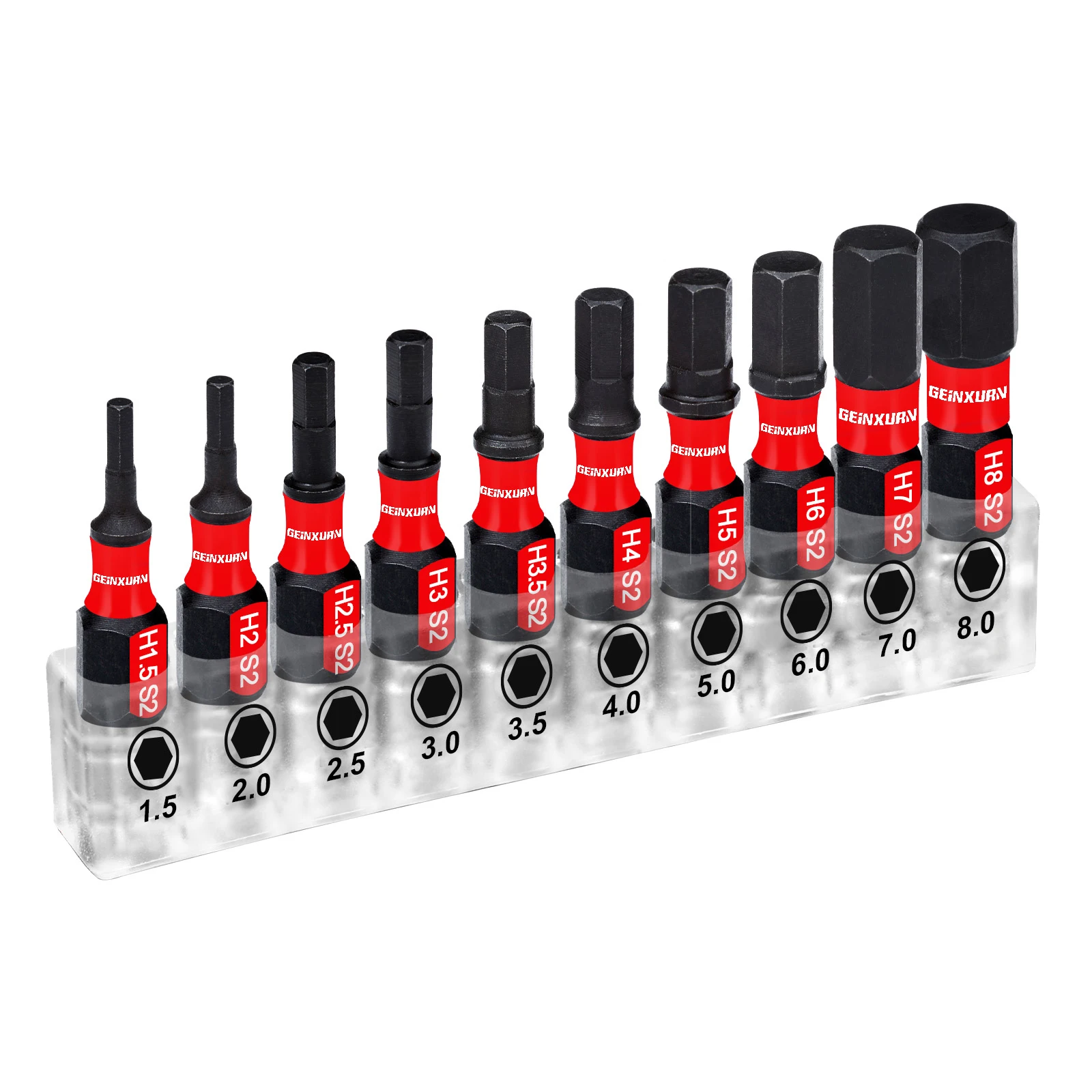 GEINXURN 1 In./2In Metric Hex Head Impact Tough Magnetic Bits Set, S2 Steel Hex Screwdriver Bit set with Base