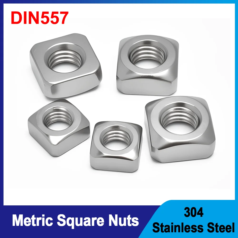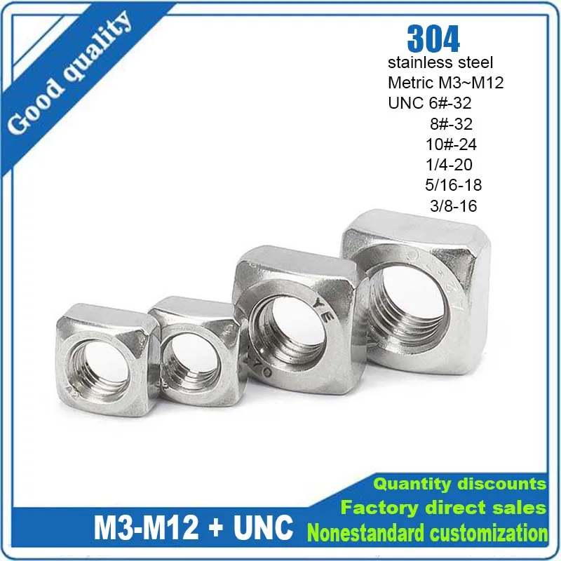 2/50pcs DIN557 304 A2-70 Stainless Steel Metric Square Nut M3 M4 M5 M6 M8 M10 M12 Foursquare Quadrate GB39 Nuts UNC 6#-32-3/8-16