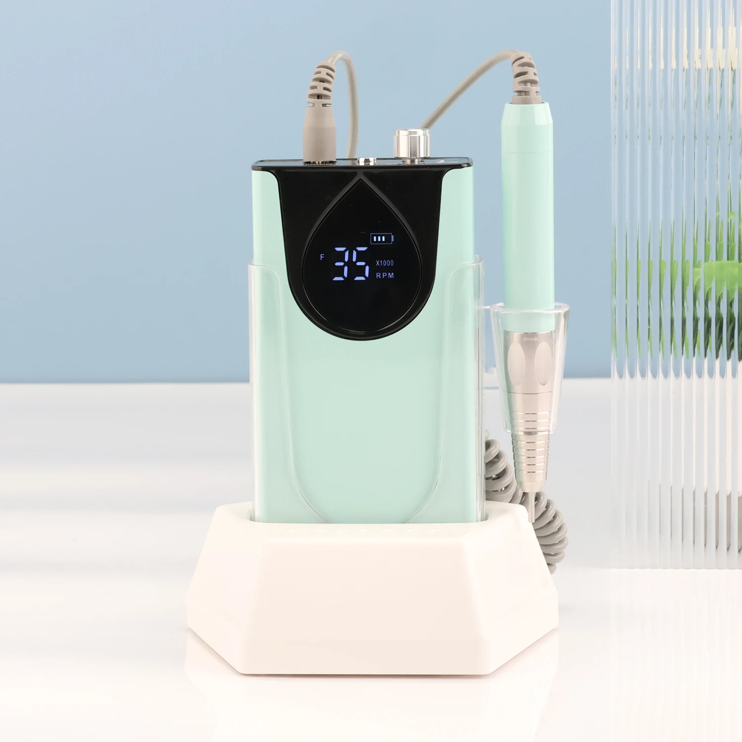 Special Design Aluminium Alloy Teardrop Shape Screen Beautiful Brushless Motor Nail Drill Machine with Power Charging Station