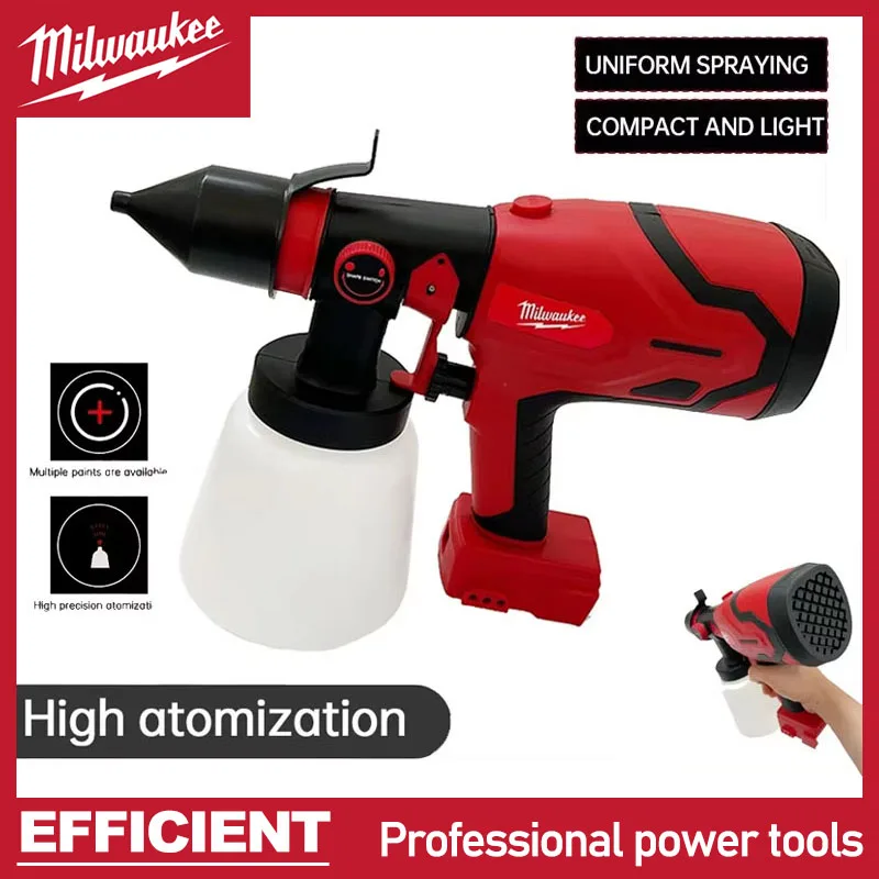 Fit Milwaukee 800ML Cordless Electric Spray Gun High Power Paint Sprayer Portable Auto Furniture Steel Coating Airbrush for 18V  Read more