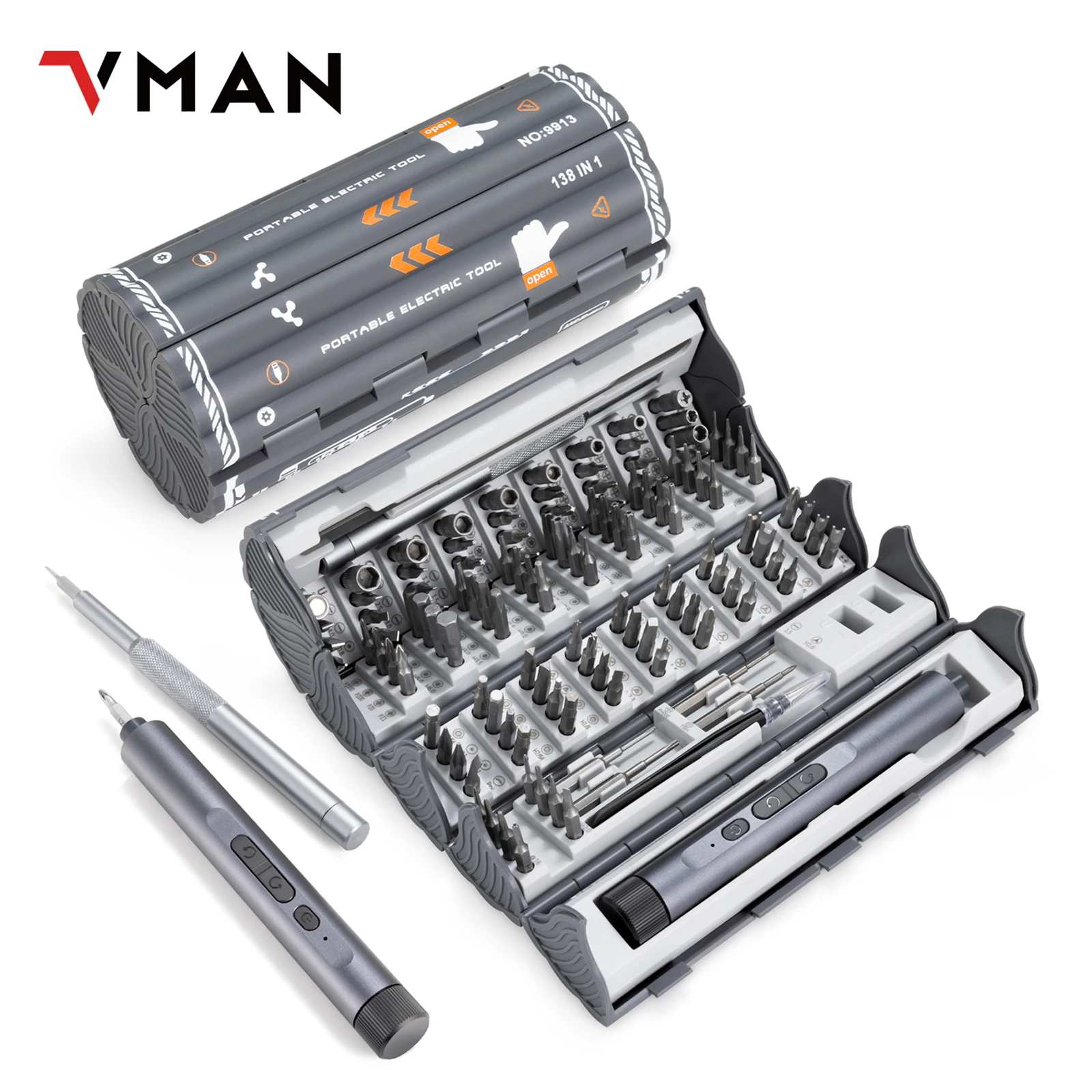 VMAN 138 in 1 Electric Precision Cordless Screwdriver set Magnetic Bits Laptop PC iPhone Glasses Repair Tool Multifunction Kit