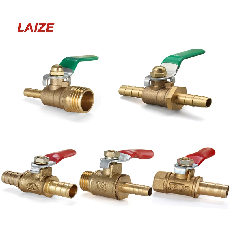 Brass Barbed ball valve 1/4 3/8 1/2 BSP Threads Male Female Thread Connector Copper Pipe Fitting