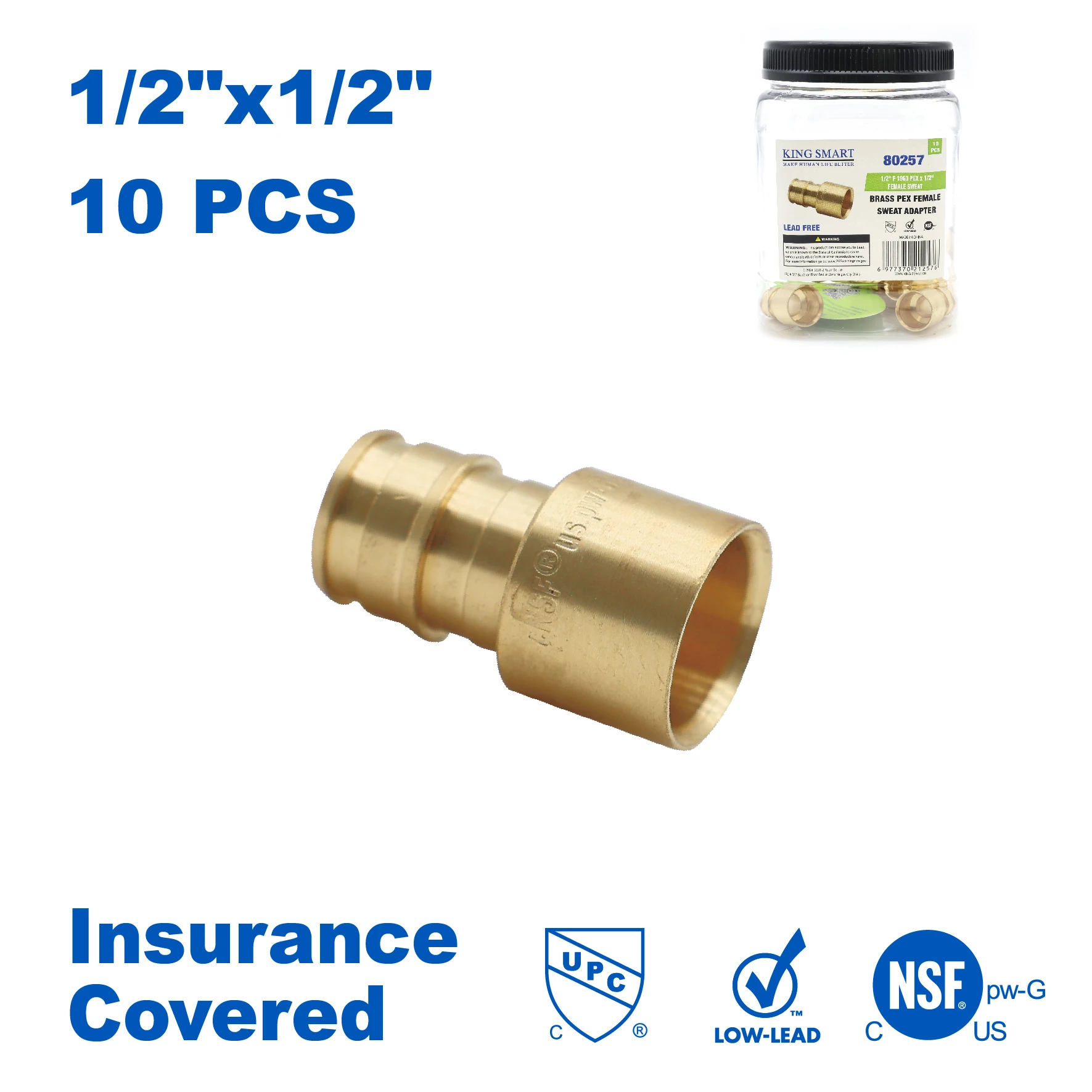 KING SMART F1960/Wisbo/PEX A Expansion PEX 1/2" * 1/2" Female Sweat Straight Adapter; 10Pcs/Case; Lead Free Brass; 80257  Read more