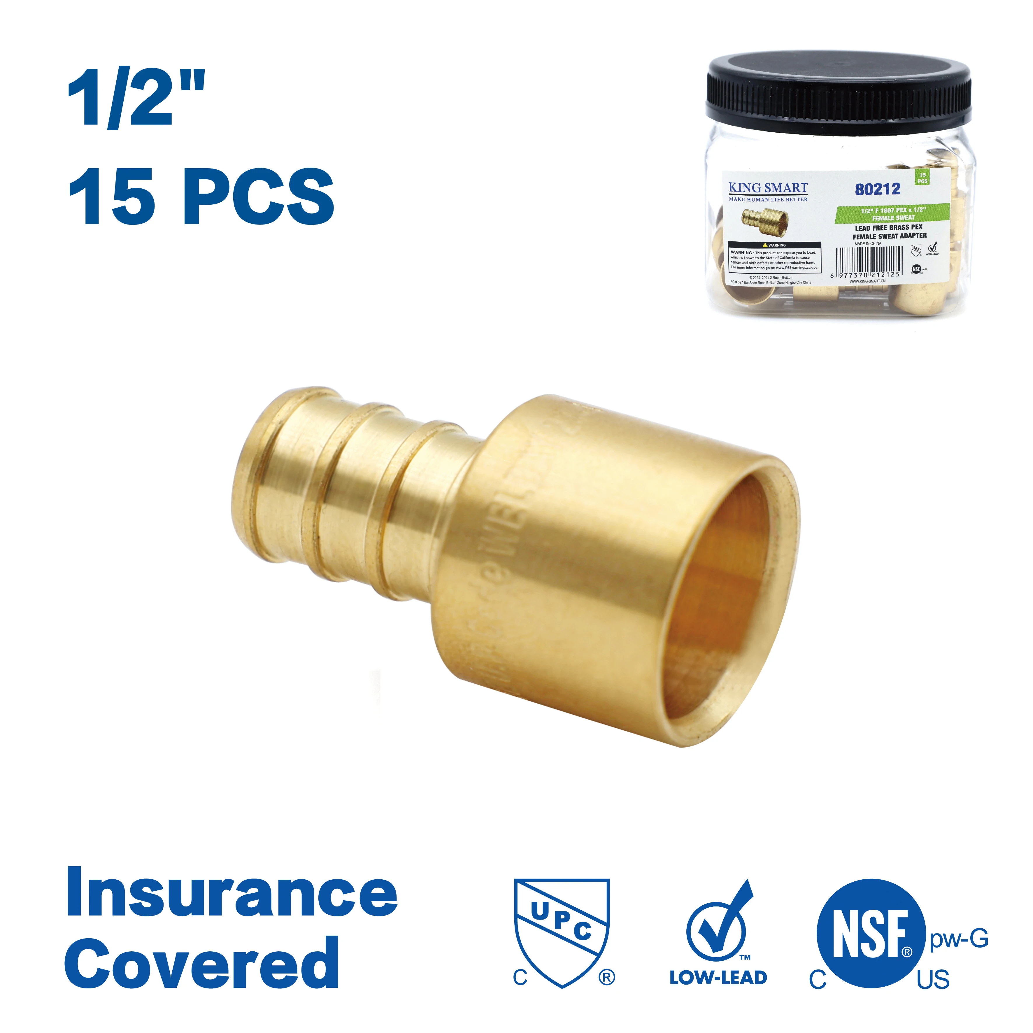 KING SMART Crimp/F1807 PEX 1/2" * 1/2" Female Sweat Adapter; Lead Free Brass; 15Pcs/Case; 80212  Read more