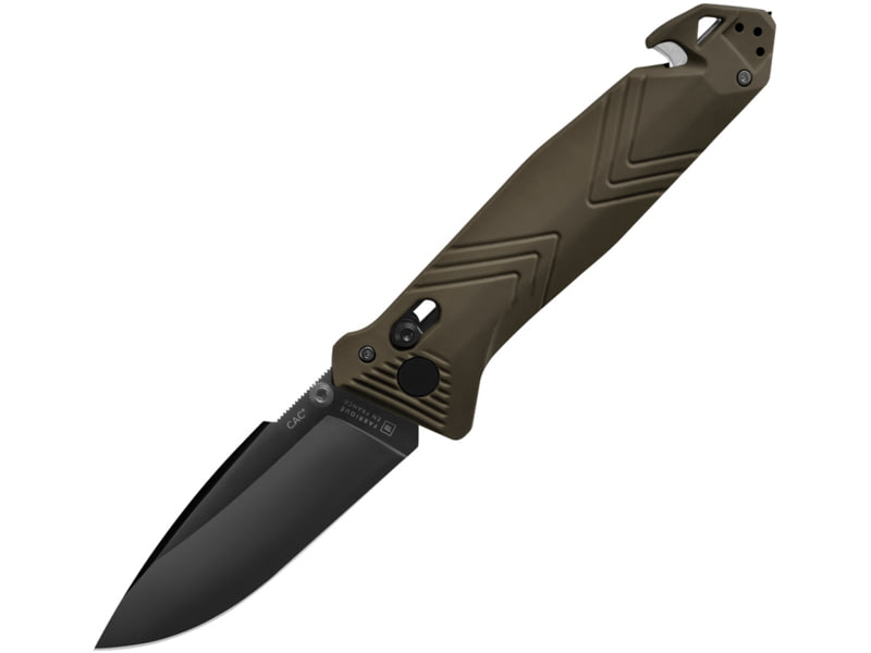 TB Outdoor C.A.C. S200 Axis Lock Folding Knife 5.5in Closed 3.75in Black Finish Partially Serrated Nitrox Steel Blade Coyote Tan Sculpted PA6 Handle. Sculpted G10 handle. Glass breaker. Belt/cord cutter. Lanyard hole. Pocket clip. Thumb stud....  Read more