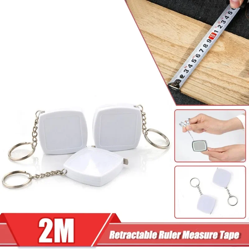 Portable Mini Tape Measure Retractable 2m Mild Steel Keychain Design Small Household Measuring Tool for DIY Crafting and Sewing