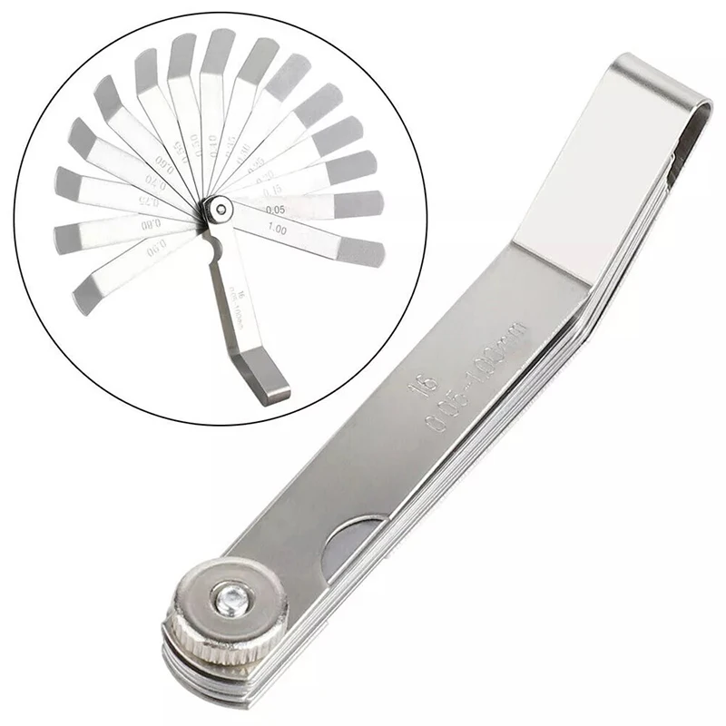 16 Blades Metric Feeler Gauge 0.05-1.0mm Curved Valve Offset Meansurement Tool for Spark Plug Gap Valve Tappets