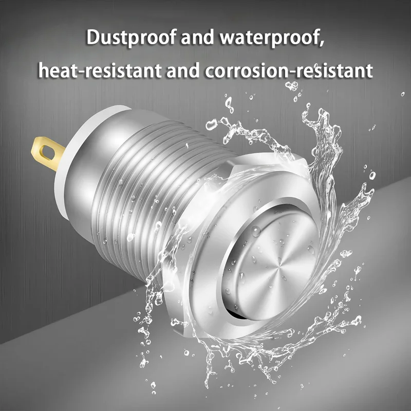 6pcs 12mm Momentary Push Button Switch 12V Waterproof Power Pushbutton Small Round Chrome Stainless Metal 2pin N/O 2025